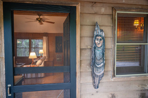 Hemlock (2 bedroom with hot tub on deck), Blue Moss (2 bedroom with bunk beds) Coca-Cola Cabin, Red Thunder Cabin, Cherokee Cabin (all one bedroom with jetted tubs).