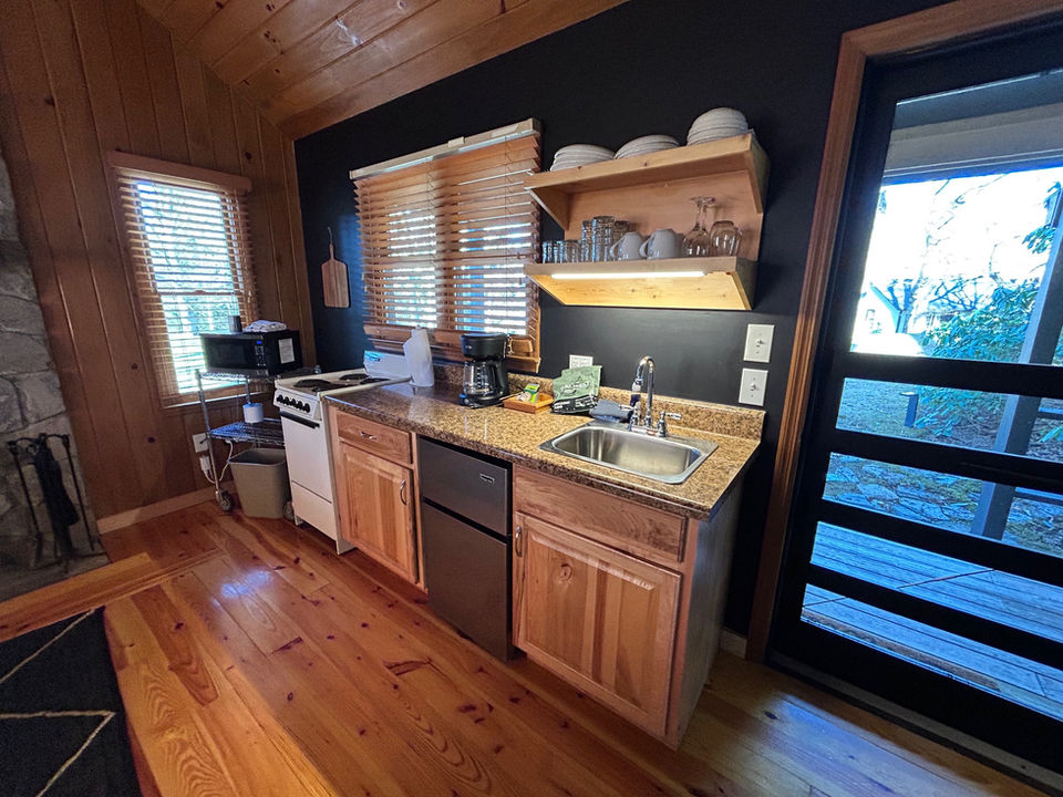 Cabins include wood burning fireplaces complementary firewood and the following: